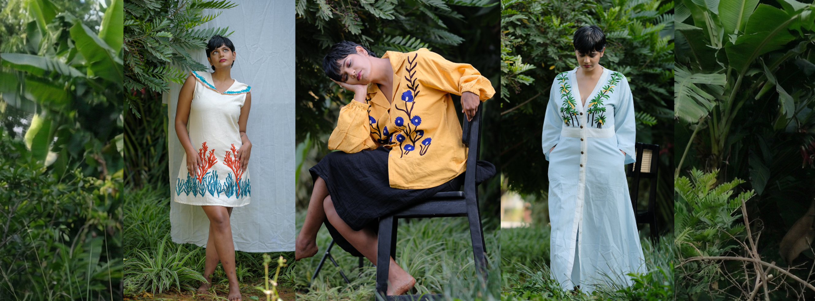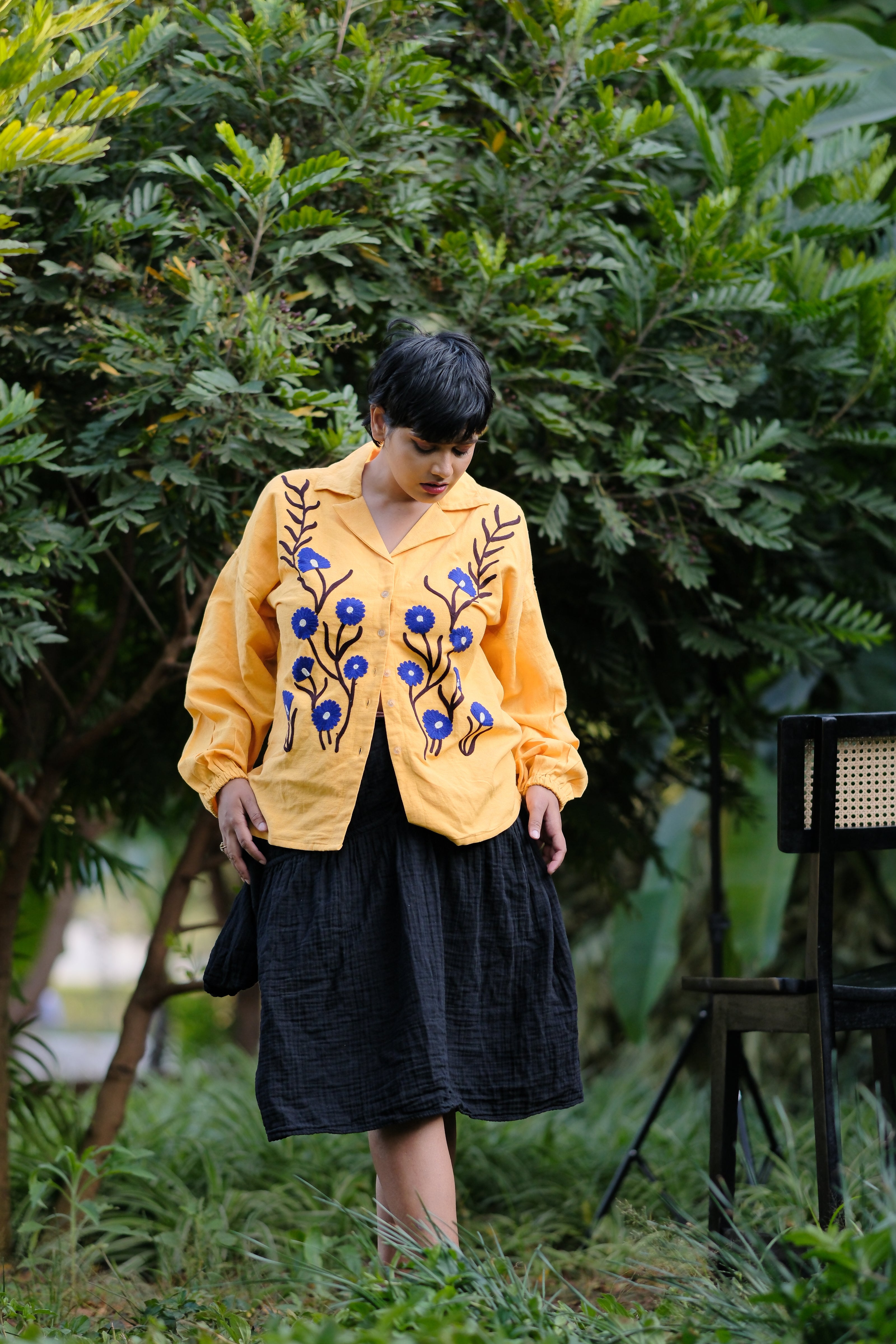 Amaya is about stories. About living with stories. About garments that hold fragments of experience: a memory, a landscape, a moment that deserves to be preserved. We translate these stories into fabric, allowing large embroidered motifs to become the language through which they are told. These motifs are not surface embellishments. They are anchors. Visual narratives stitched into the cloth, meant to be seen, recognised, and remembered. When the structure is quiet, the embroidery speaks. When the form is resolved, the motif carries power. The result is clothing that does not shout, yet cannot be ignored.